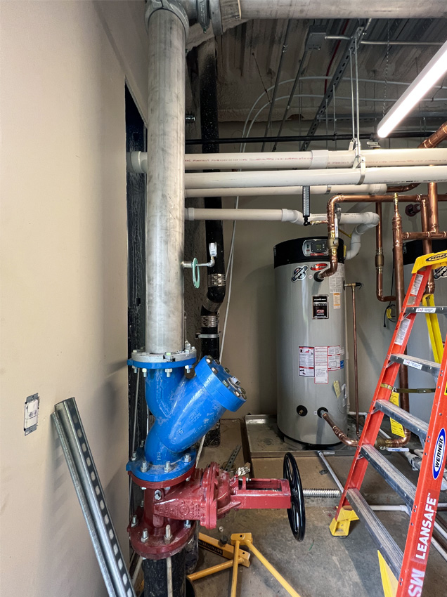 • Five-story parking garage included underground and aboveground cast iron storm drain piping system and copper water piping